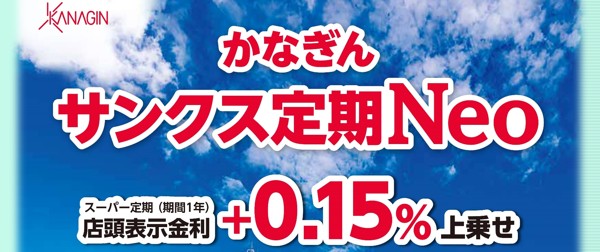あなたの大切な預金に「かなぎん」からうれしいプレゼント。スーパー定期(期間1年)に、+0.15%の金利を上乗せします!